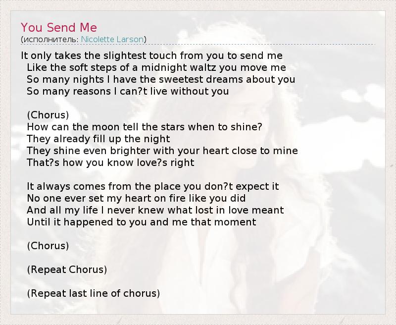 А как ты думаешь, о чем песня "You Send Me" ?