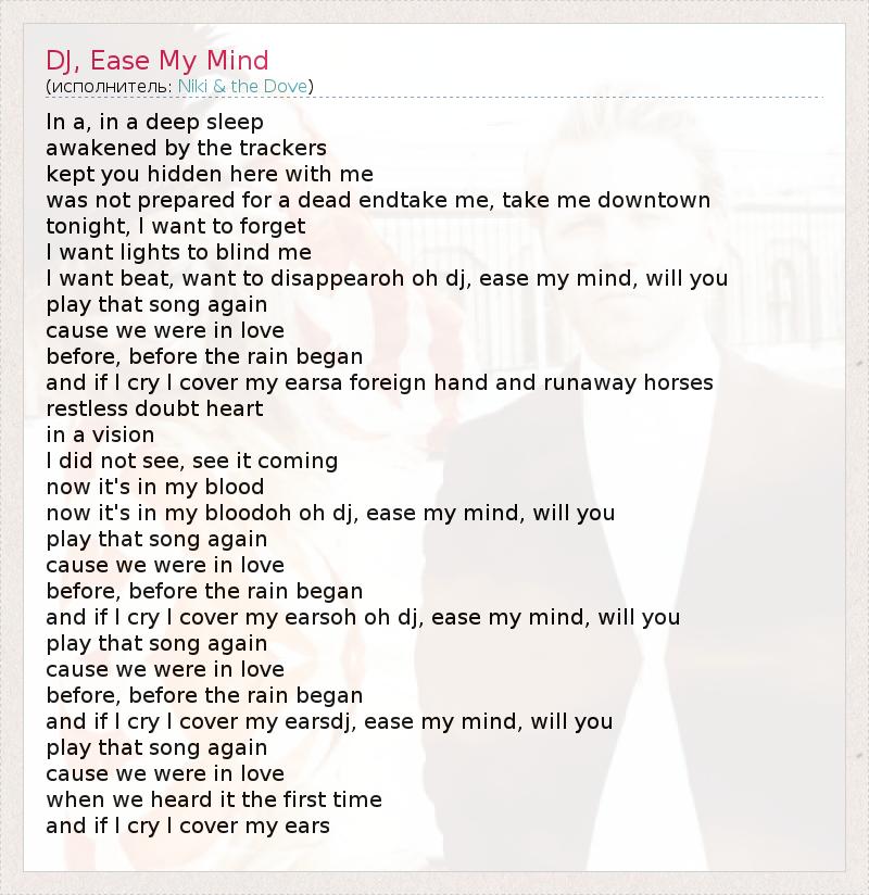 А как ты думаешь, о чем песня "DJ, Ease My Mind" ?