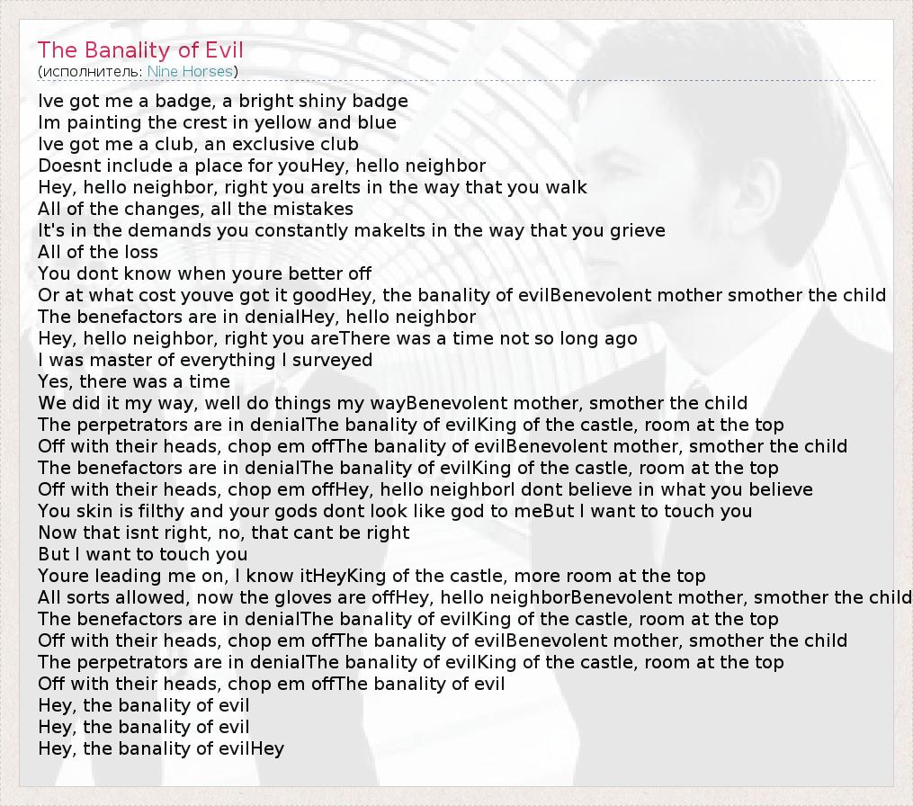 А как ты думаешь, о чем песня "The Banality of Evil" ?