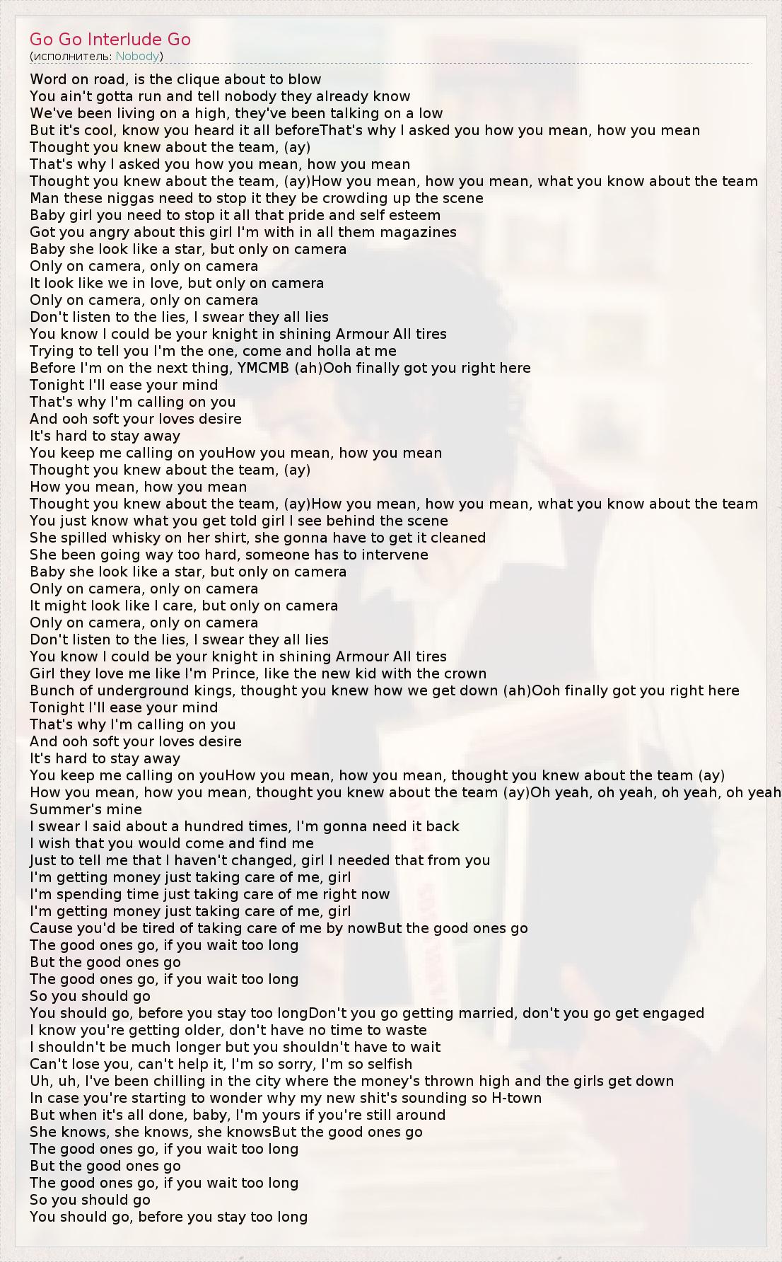 А как ты думаешь, о чем песня "Go Go Interlude Go" ?