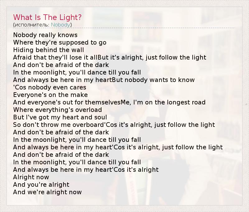 Afraid that they'll lose it allBut it's alright, just follow the light