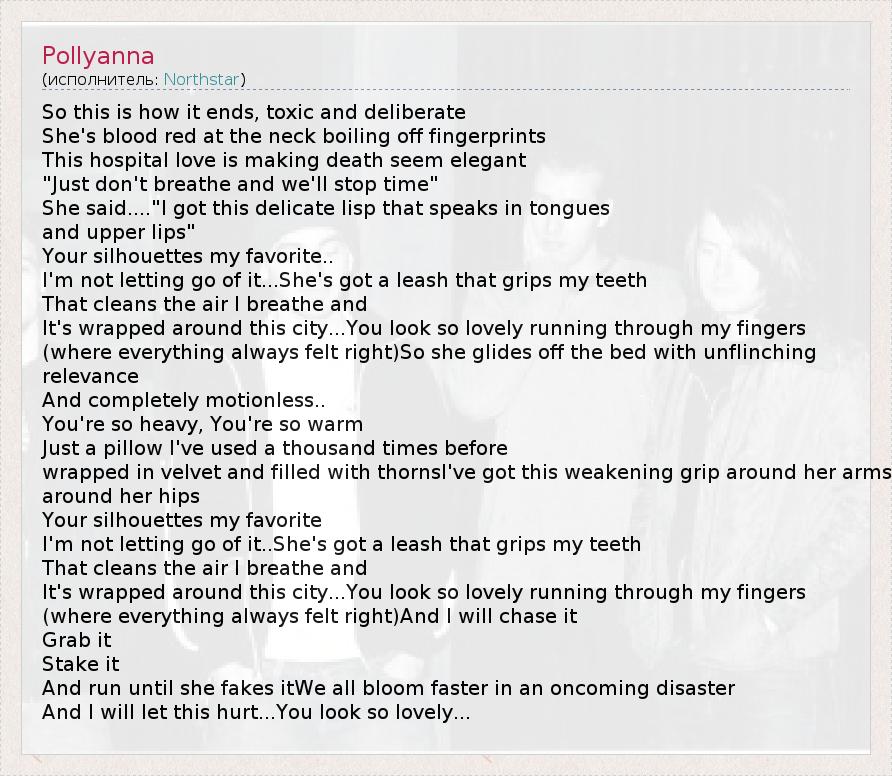 А как ты думаешь, о чем песня "Pollyanna" ?