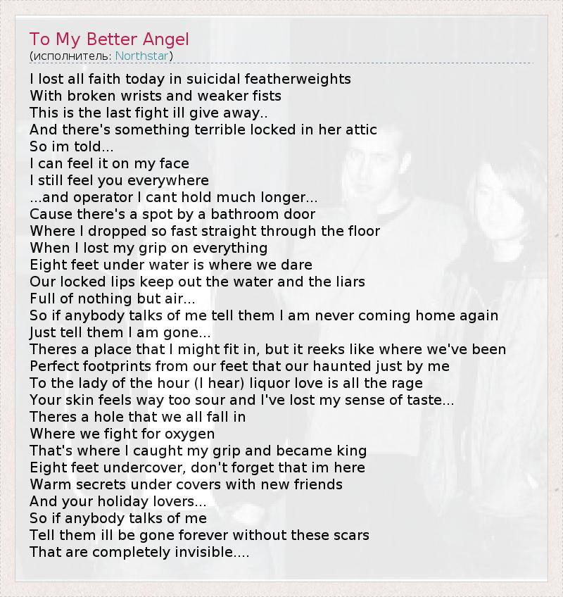 А как ты думаешь, о чем песня "To My Better Angel" ?