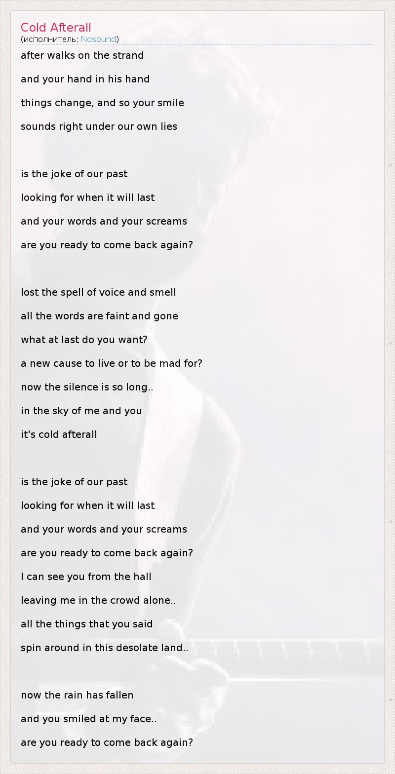 А как ты думаешь, о чем песня "Cold Afterall" ?