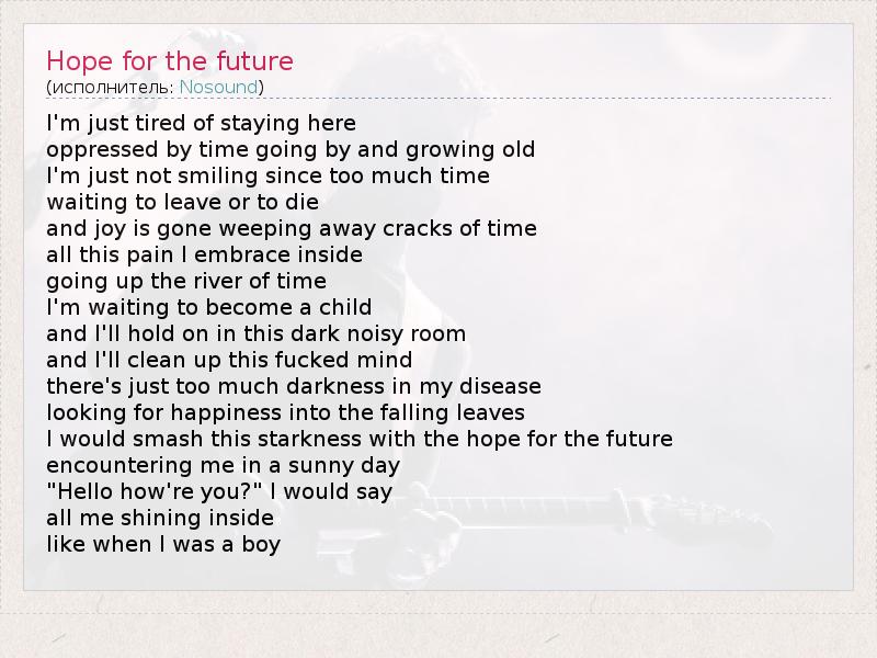 А как ты думаешь, о чем песня "Hope for the future" ?