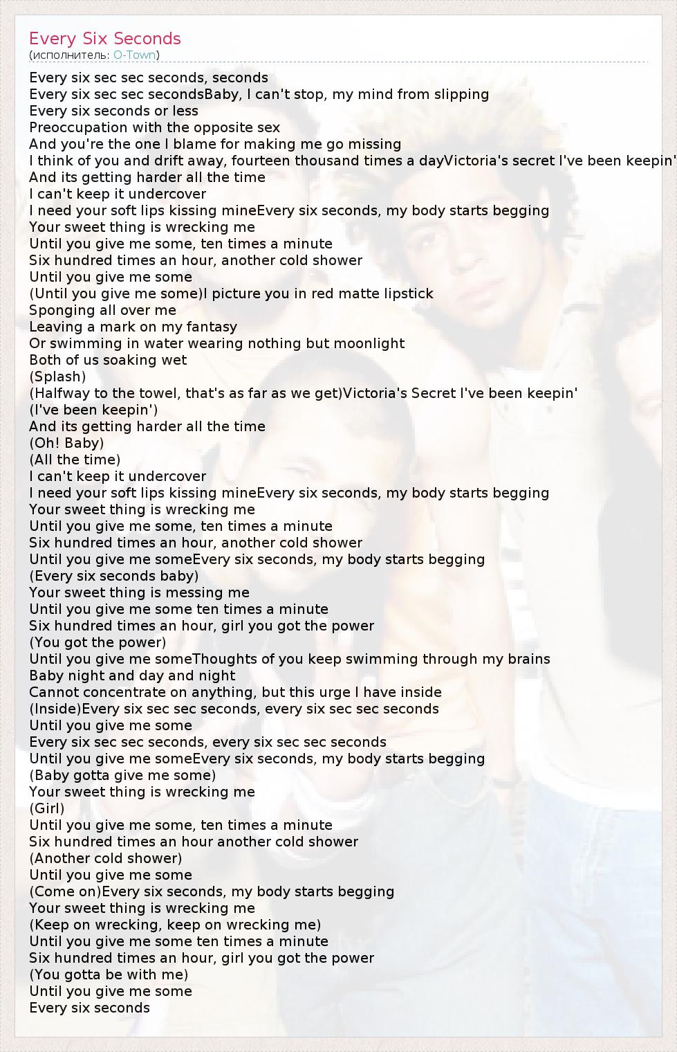 (Inside)Every six sec sec seconds, every six sec sec seconds