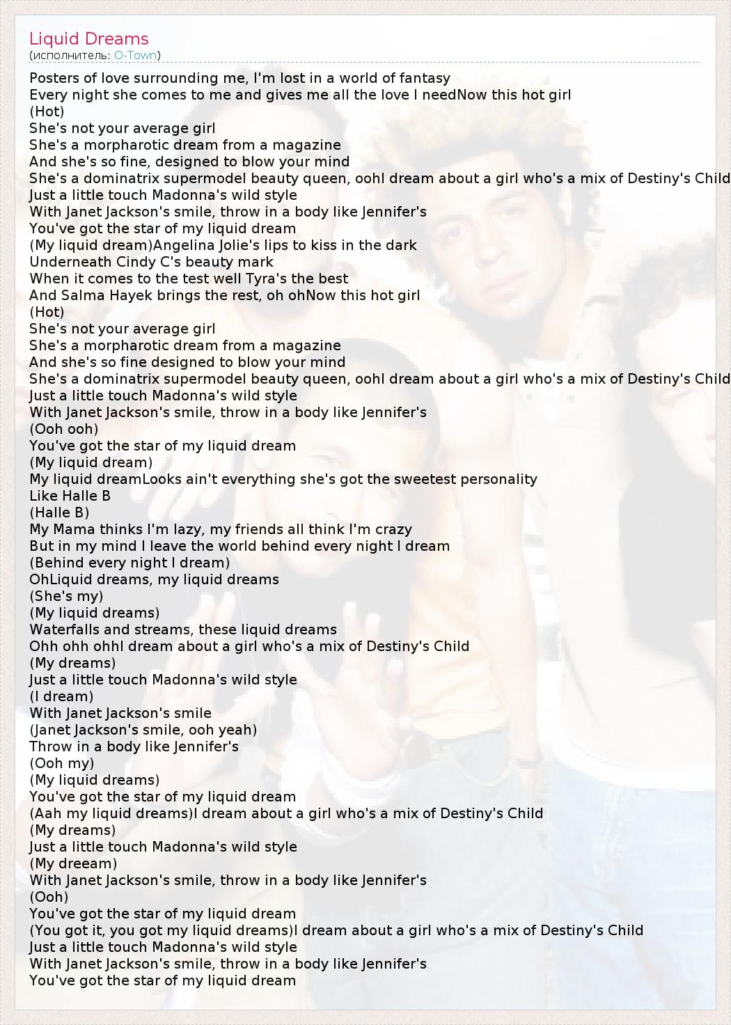 (Aah my liquid dreams)I dream about a girl who's a mix of Destiny's Child