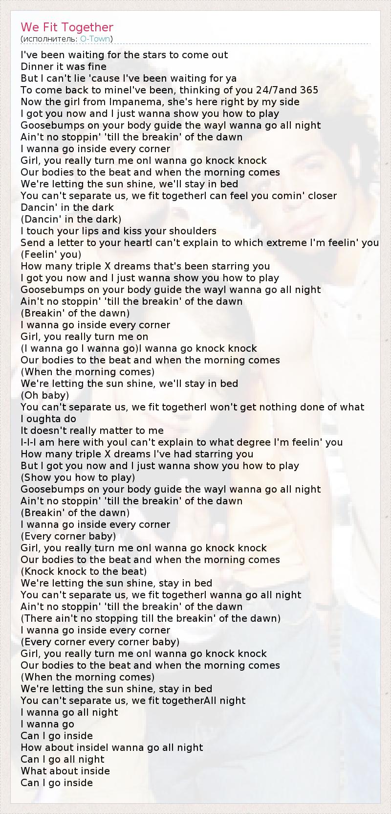 А как ты думаешь, о чем песня "We Fit Together" ?
