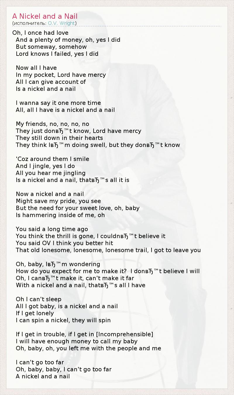 А как ты думаешь, о чем песня "A Nickel and a Nail" ?
