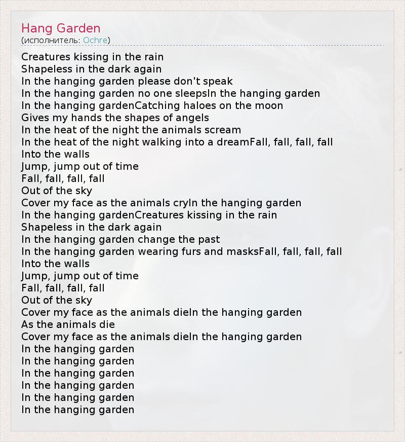 А как ты думаешь, о чем песня "Hang Garden" ?