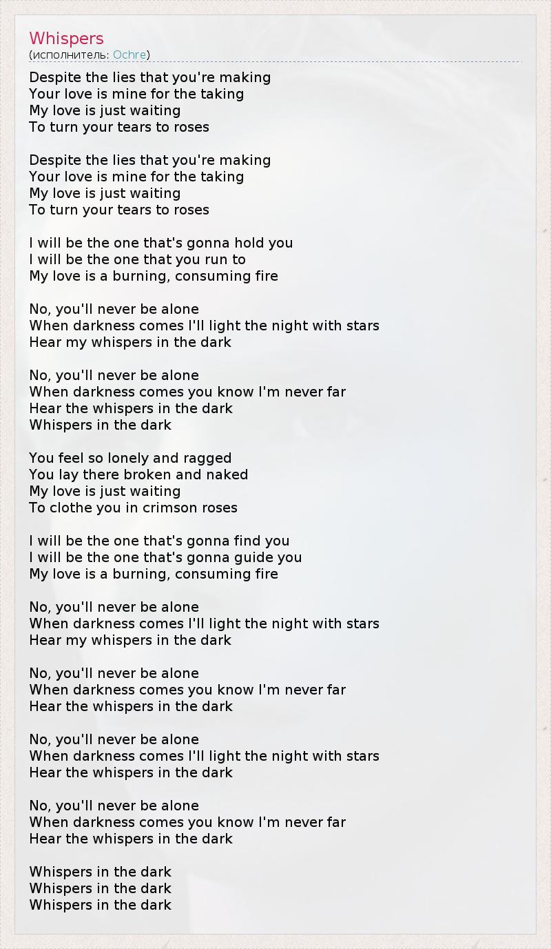 Когда наступает ночь, ты же знаешь, что я всегда рядом.