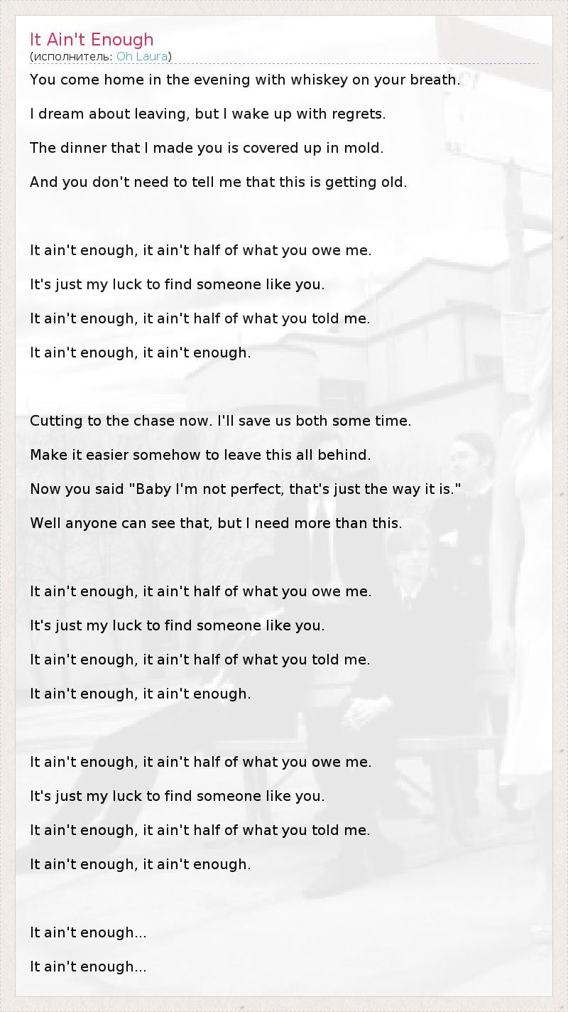 А как ты думаешь, о чем песня "It Ain't Enough" ?