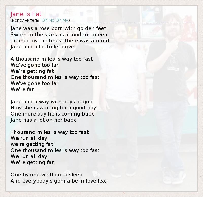А как ты думаешь, о чем песня "Jane Is Fat" ?