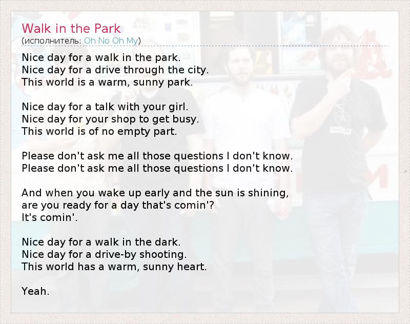 А как ты думаешь, о чем песня "Walk in the Park" ?