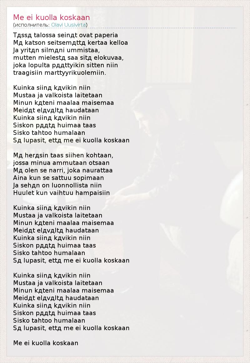А как ты думаешь, о чем песня "Me ei kuolla koskaan" ?