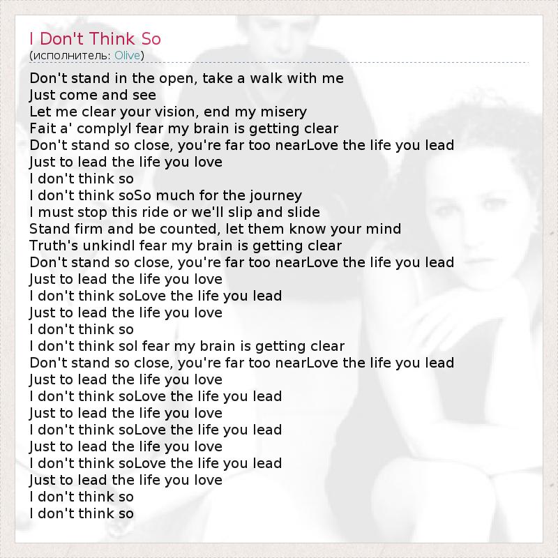 А как ты думаешь, о чем песня "I Don't Think So" ?