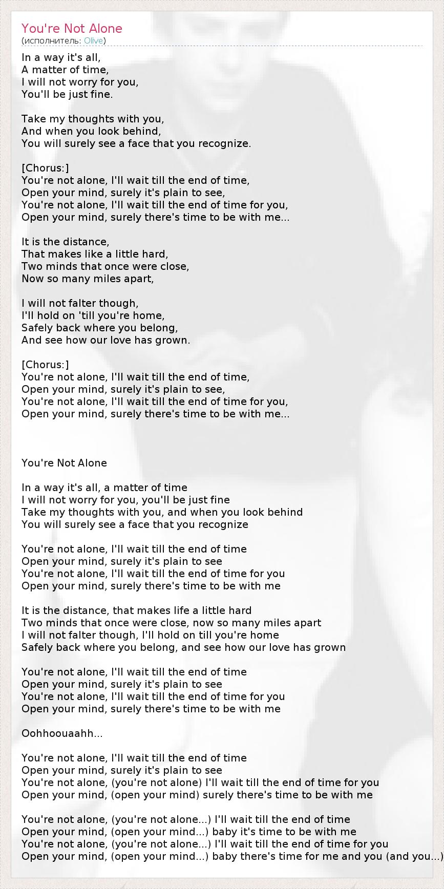 А как ты думаешь, о чем песня "You're Not Alone" ?