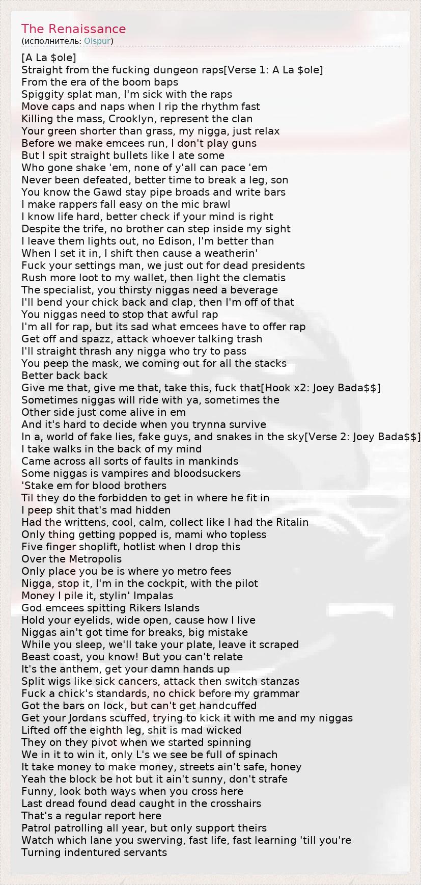 А как ты думаешь, о чем песня "The Renaissance" ?