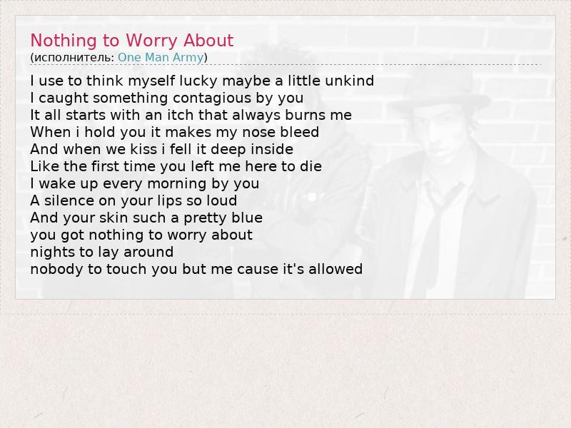 А как ты думаешь, о чем песня "Nothing to Worry About" ?