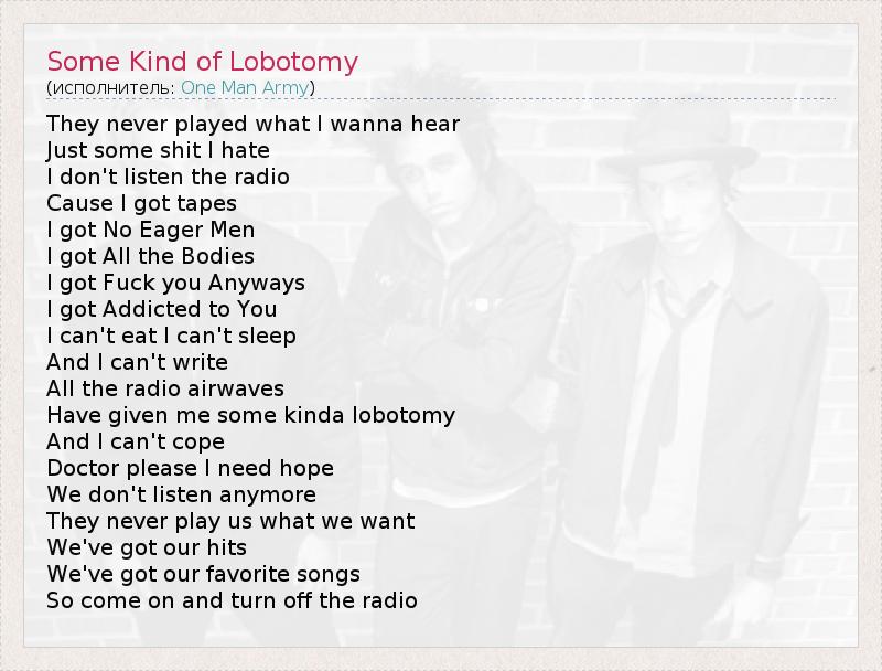 А как ты думаешь, о чем песня "Some Kind of Lobotomy" ?