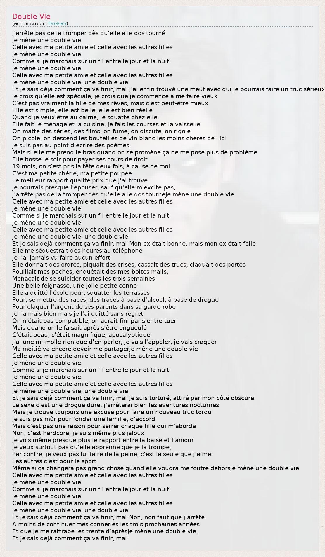 А как ты думаешь, о чем песня "Double Vie" ?