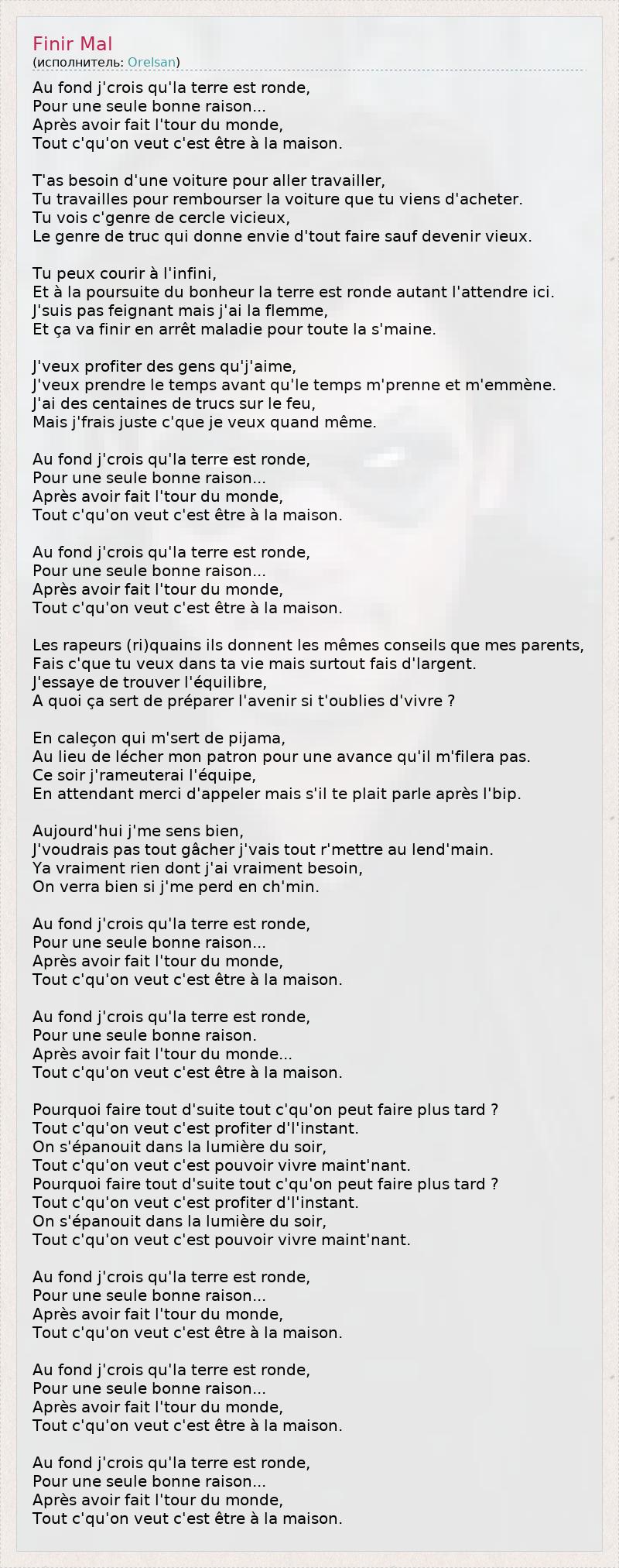 А как ты думаешь, о чем песня "Finir Mal" ?