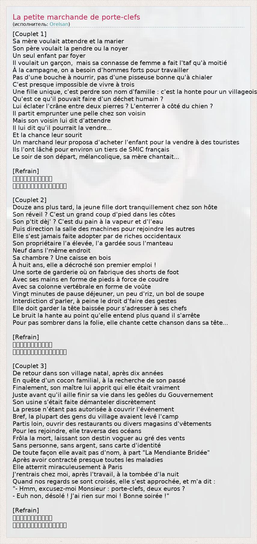 ГлавнаяИсполнителиOrelsanLa petite marchande de porte-clefs