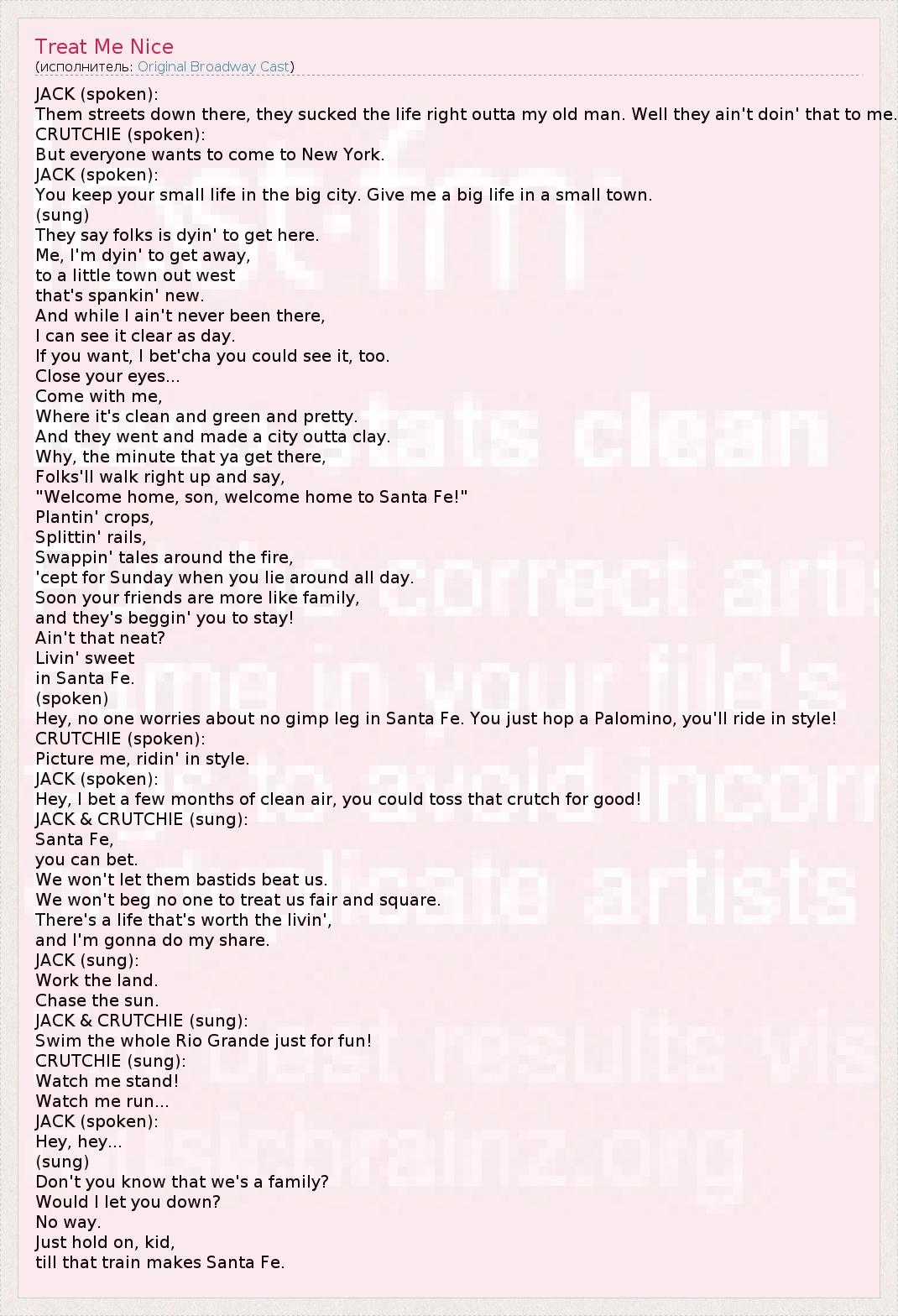 А как ты думаешь, о чем песня "Treat Me Nice" ?