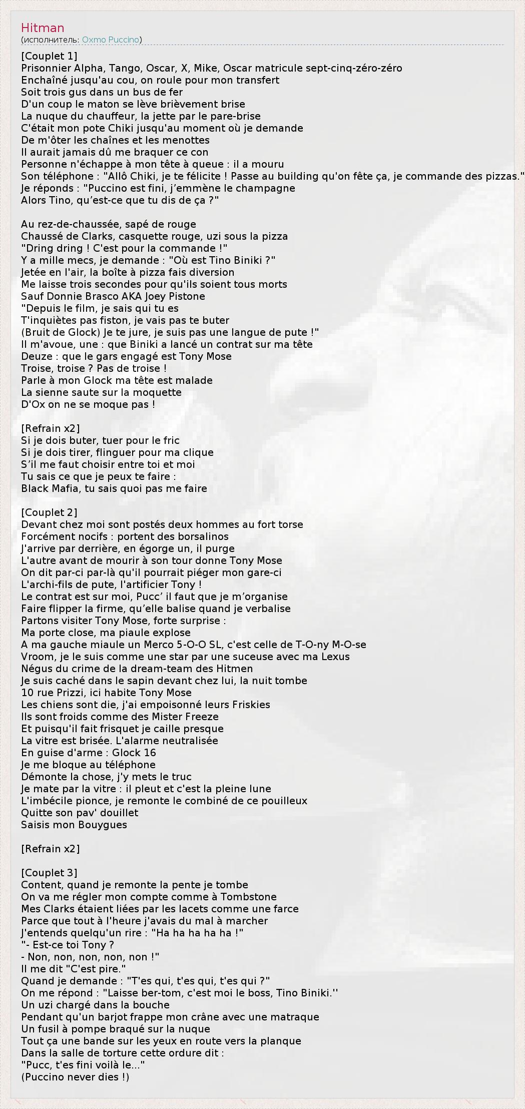 А как ты думаешь, о чем песня "Hitman" ?