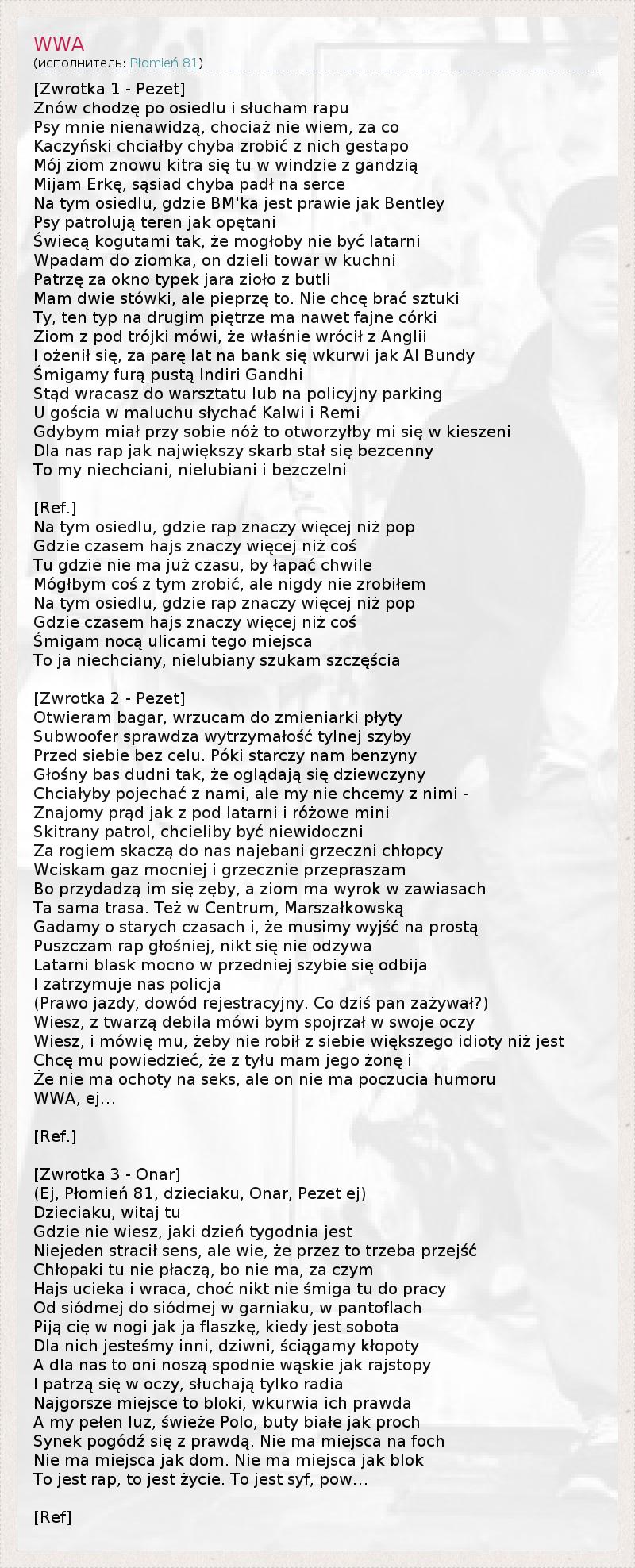 (Ej, Płomień 81, dzieciaku, Onar, Pezet ej)