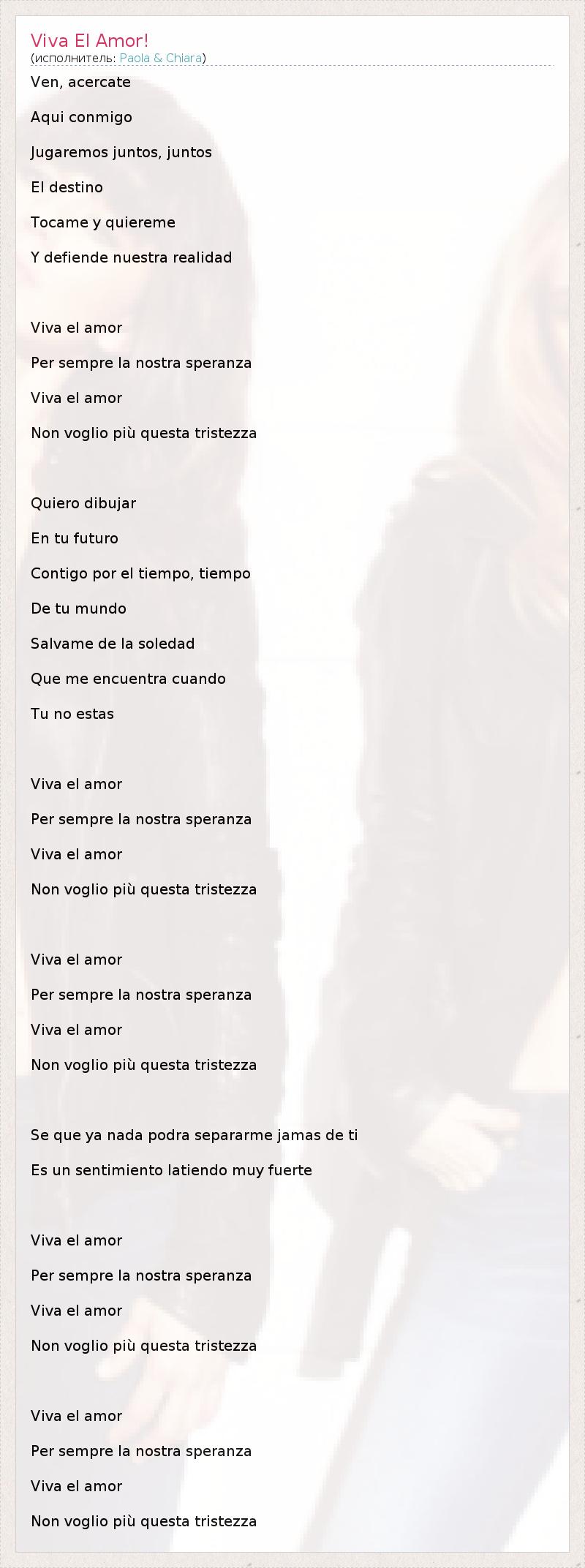 А как ты думаешь, о чем песня "Viva El Amor!" ?