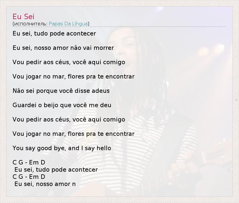 А как ты думаешь, о чем песня "Eu Sei" ?