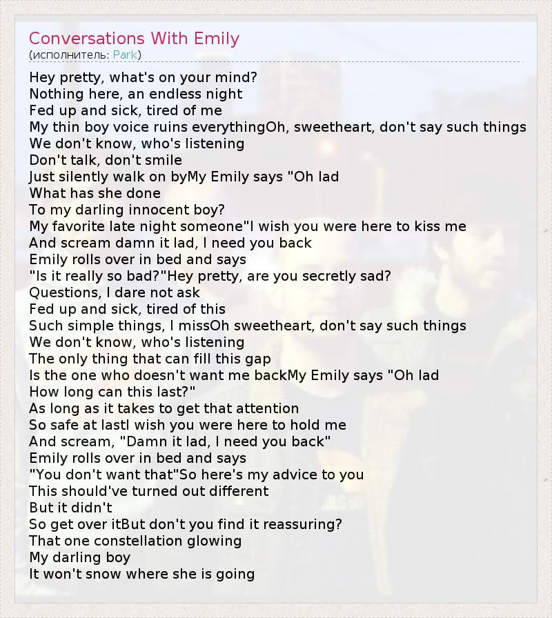 А как ты думаешь, о чем песня "Conversations With Emily" ?