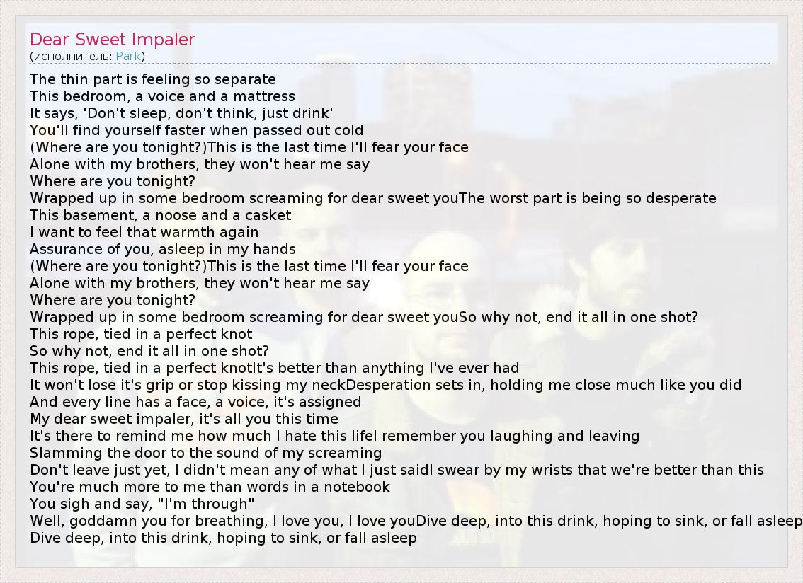 ГлавнаяИсполнителиParkDear Sweet Impaler