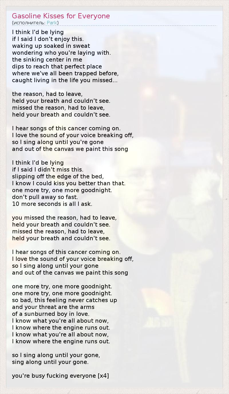 А как ты думаешь, о чем песня "Gasoline Kisses for Everyone" ?