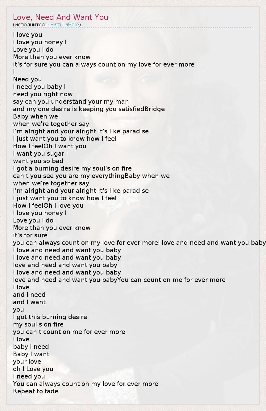 А как ты думаешь, о чем песня "Love, Need And Want You" ?