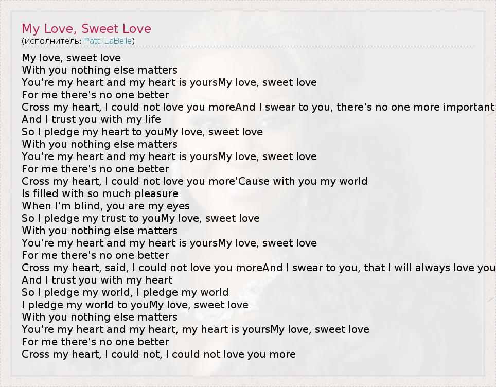 А как ты думаешь, о чем песня "My Love, Sweet Love" ?
