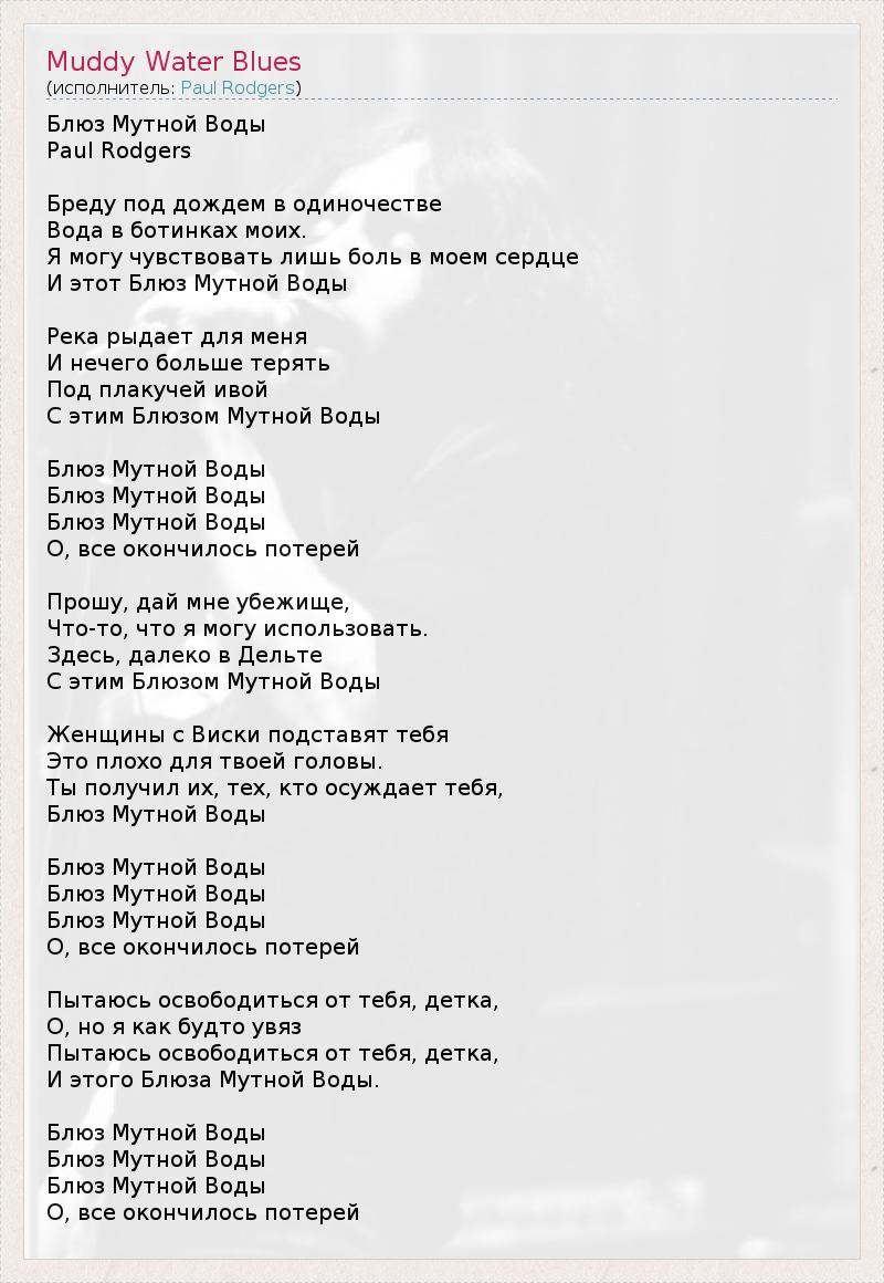 А как ты думаешь, о чем песня "Muddy Water Blues" ?