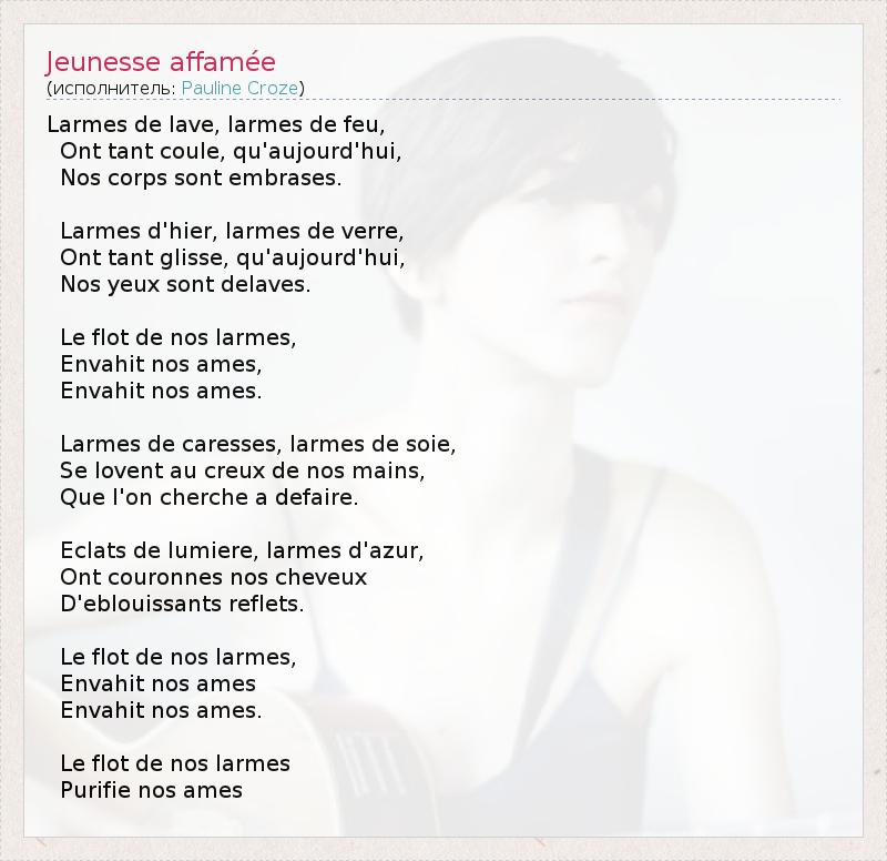 А как ты думаешь, о чем песня "Jeunesse affamée" ?