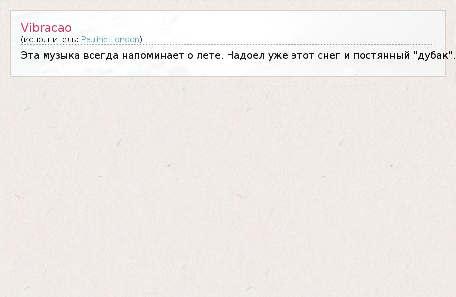 Эта музыка всегда напоминает о лете. Надоел уже этот снег и постянный "дубак".