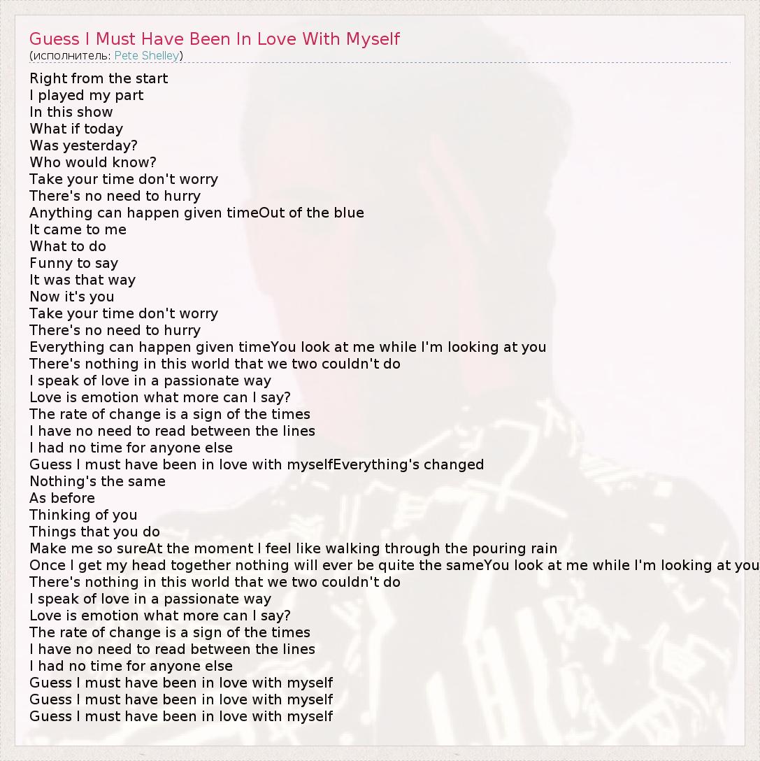 А как ты думаешь, о чем песня "Guess I Must Have Been In Love With Myself" ?
