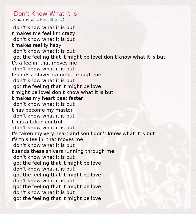 А как ты думаешь, о чем песня "I Don't Know What It Is" ?