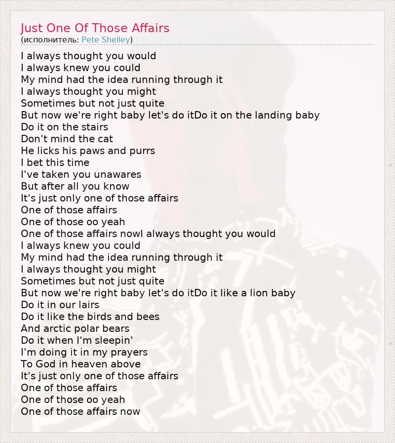 А как ты думаешь, о чем песня "Just One Of Those Affairs" ?