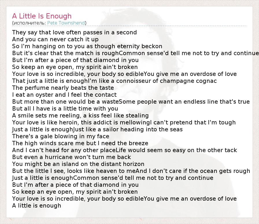А как ты думаешь, о чем песня "A Little Is Enough" ?