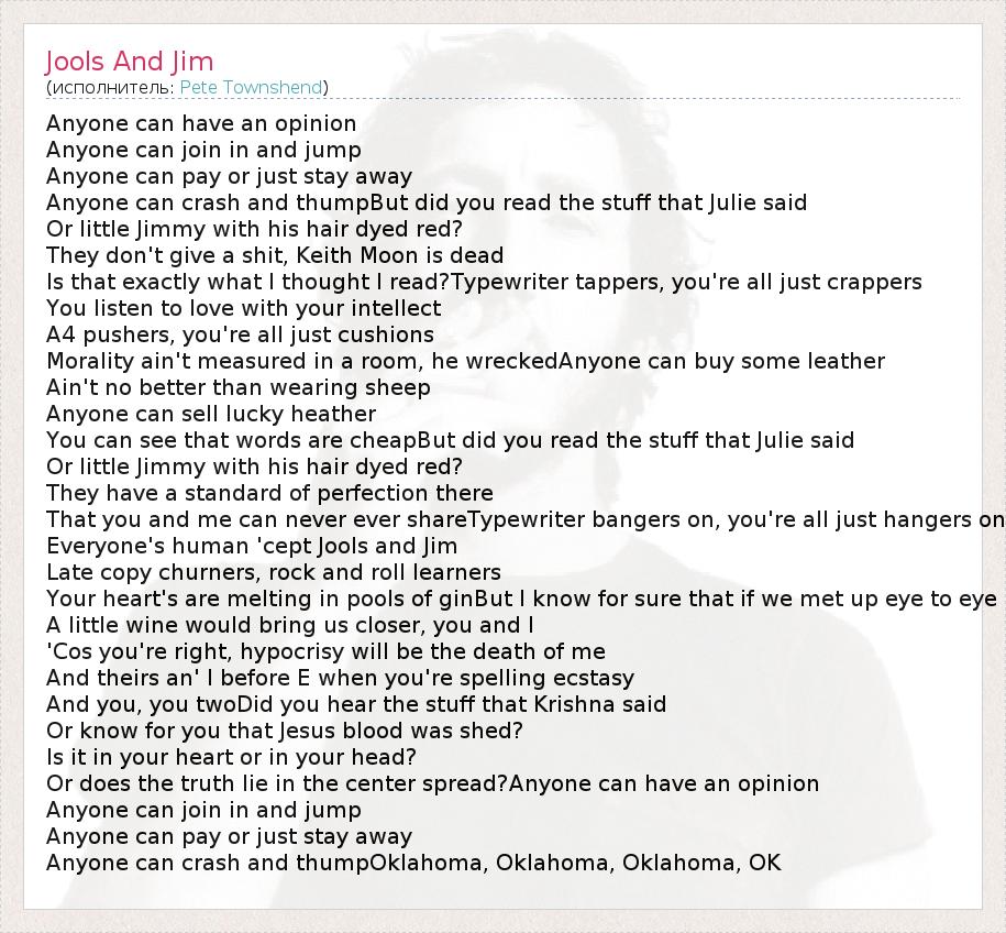 А как ты думаешь, о чем песня "Jools And Jim" ?