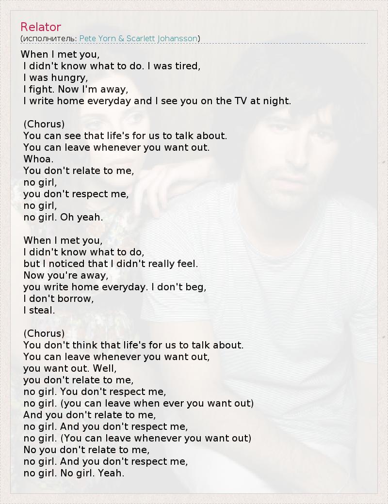 you don't relate to me,