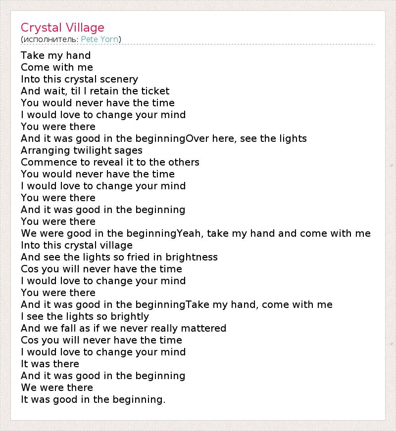 А как ты думаешь, о чем песня "Crystal Village" ?
