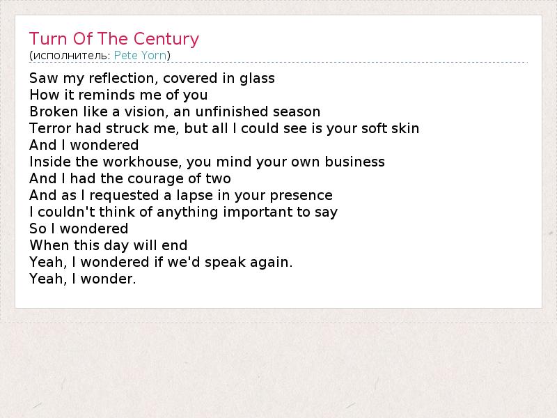 А как ты думаешь, о чем песня "Turn Of The Century" ?