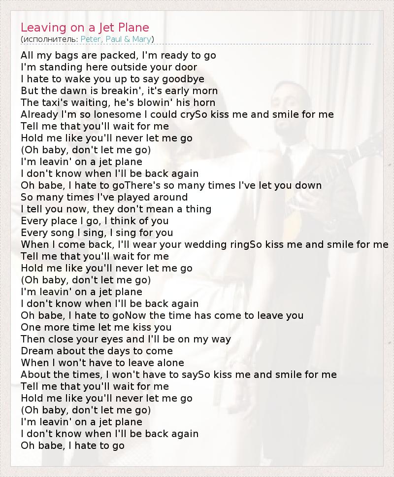 А как ты думаешь, о чем песня "Leaving on a Jet Plane" ?