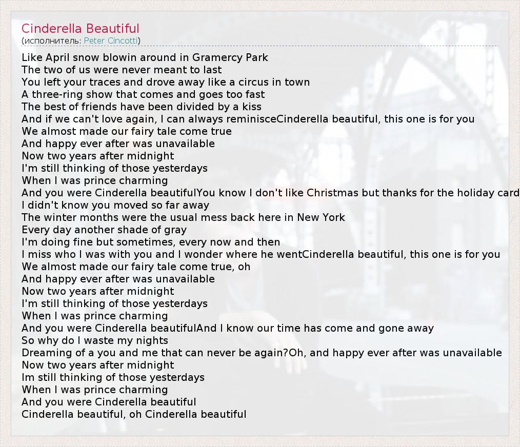 А как ты думаешь, о чем песня "Cinderella Beautiful" ?